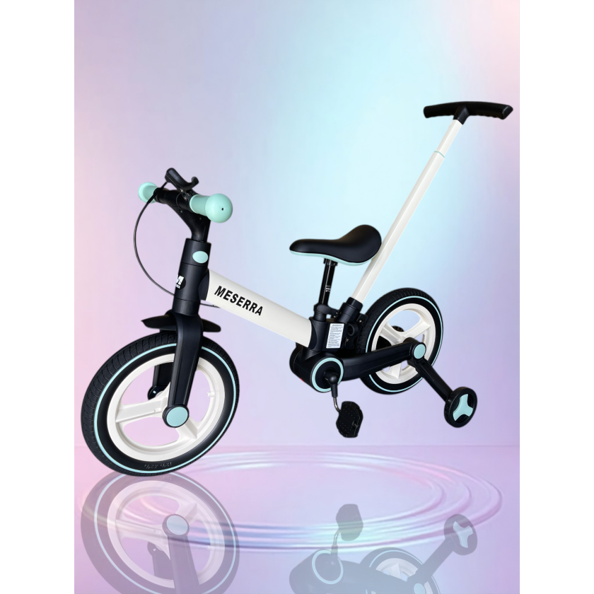 Rowerek wielofunkcyjny,który pełni fukcję biegówki lub gdy dziecko troszkę podrośnie rowerka z kołkami. Jego zaletą jest możliwość zmiany jego fukcji w kilka chwil bowiem wszystkie elementy montuje się i demotuje bez użycia klucza.